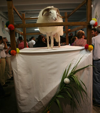 Ja de matinada, l'anyell és guarnit amb flocs de colors i preparat per recórrer els carrers de Ciutadella.