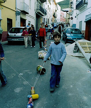 Els xiquets i xiquetes passaven llargues temporades recollint llaunes d'entre els horts (recipients buits de pesticides que s'utilitzaven al camp) o demanant altres tipus de llaunes a benzineres, forns i altres botigues i comerços. Els dies abans de la festa hi havia una acusada tensió entre els xiquets, ja que les diferents colles intentaven endevinar l'indret on tenien amagats els rastres per furtar-los i així tindre el rastre més llarg. Durant el dia de la festa els xiquets passejaven pels carrers del poble arrossegant els rastres de pots, llaunes, cassoles, paelles velles i altres objectes metàl·lics que s'havien construït ells mateixos amb l'objectiu de fer el màxim de soroll possible.