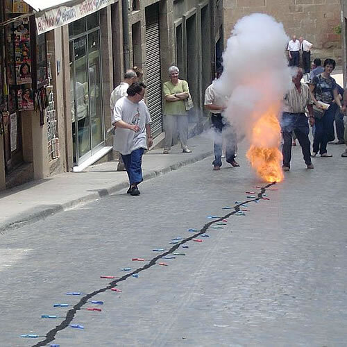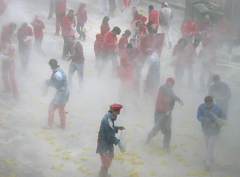 Durant les festes de Carnaval alguns pobles i ciutats treuen al carrer tot el seu arsenal d'armes de destrucció massiva de l'avorriment. Caramels, tomàquets, merenga, confetti, flors o farina protagonitzen moments de lluita aferrissada on en comptes d'odi, rencor i mort, trobem somriures, abraçades, bromes i moments d'il·lusió compartida.