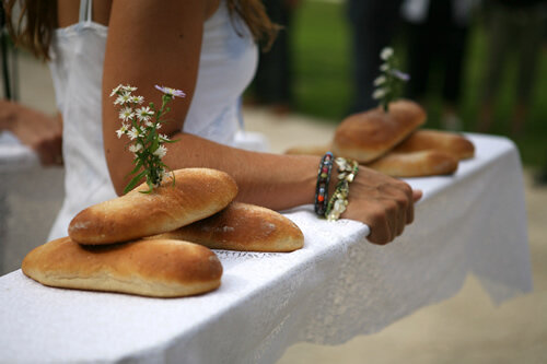 El pa que es beneeix, les barquilles, són coques elaborades pel forn Nogués en forma de vaixell, forma que ha servit per acabar batejant-les. Cada una de les 25 parelles duu tres barquilles sobre una fusta coberta amb un mantell, alhora que cada una de les barquilles s'adorna amb flors, motiu pel qual les safates acaben sent d'allò més vistoses.
