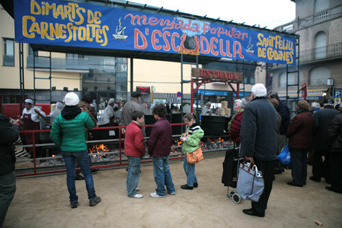 - seguint la tradició de cada any, diumenge de Carnestoltes es cuina l'escudella i la carn d'olla a la plaça. Tot seguit, i malgrat el fred i el vent, moltes persones s'entaulen per dinar amb aquest menú centenari.