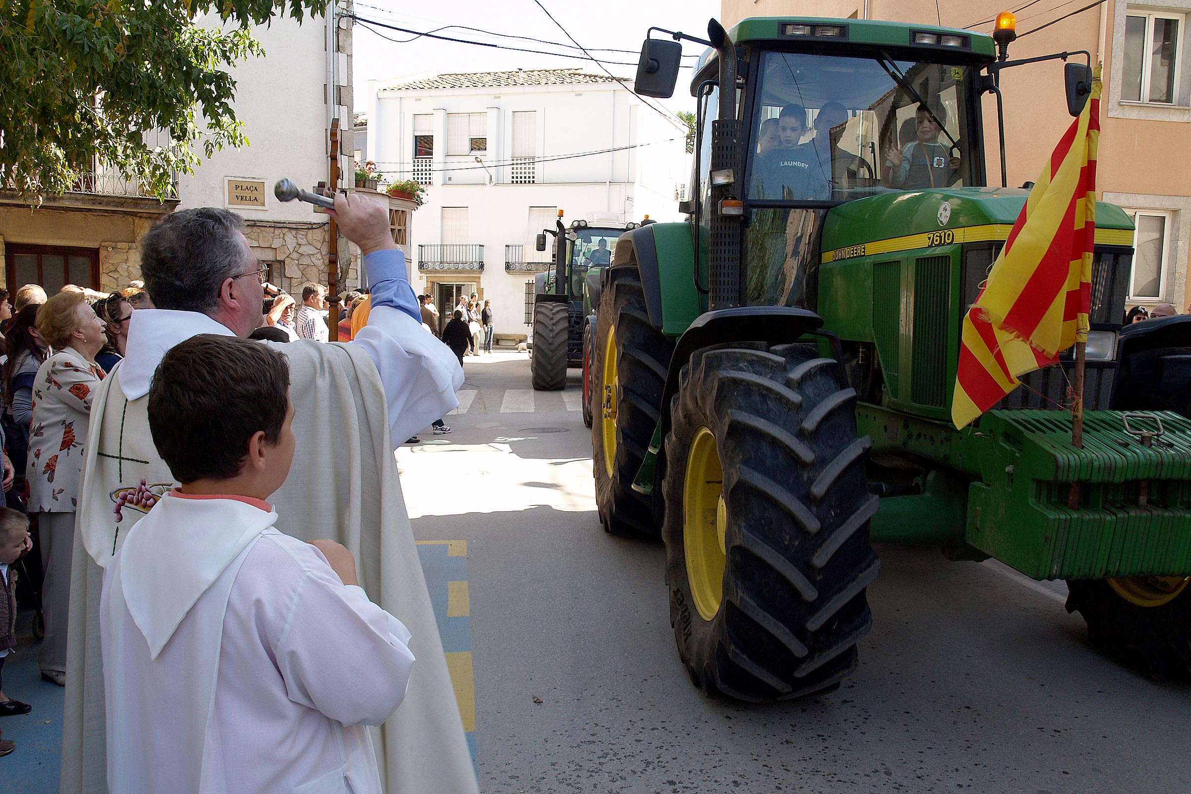 Acabades les ofrenes, comença la cercavila de tractors. Un centenar de tractors, nous i antics, es concentren als carrers del nucli antic i poc a poc van desfilant per davant l'església, on els espera el mossèn per donar-los una benedicció amb aigua sagrada. Els pagesos, vinguts dels masos dels tres nuclis de població (Vilobí, Salitja i Sant Dalmai) i també d'altres pobles de la comarca, condueixen els tractors acompanyats per familiars seus per tal de lluir maquinària. Tot seguit es fa el dinar de germanor i una audició i ballada de sardanes.