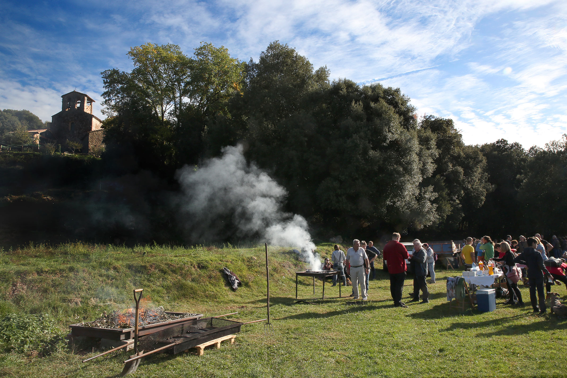 Antigament l'aplec havia estat molt concorregut i durava tot el dia. Els veïns dinaven agrupats per famílies a l'esplanada que hi ha uns metres més avall de l'ermita i coïen la carn en un gran foc a terra.