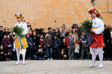 Cossiers esperant a fer el ball de l'oferta dins l'església